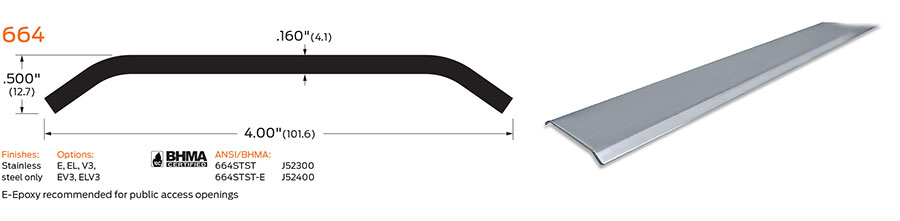Zero 664STST 96" Saddle Threshold without supporting legs, 4"W x 1/2"H, 96" Length, Stainless Steel