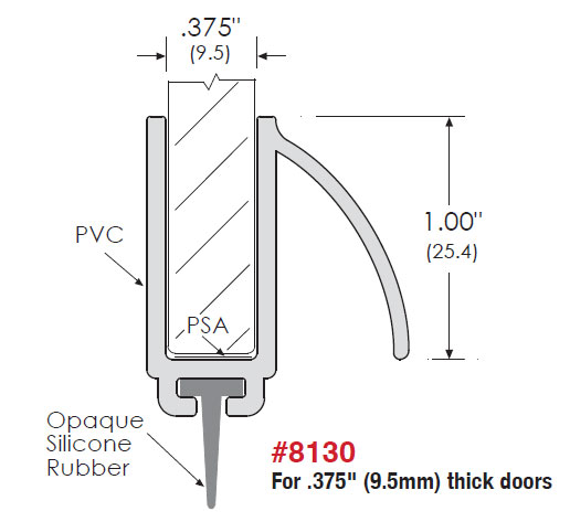 Zero 8130 42" PVC Glass Edge Protection with Opaque Silicone Rubber insert for .375" thick doors - Self-Adhesive