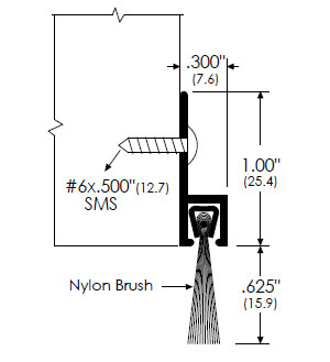 Door Bottom Sweep with Nylon Brush insert, Material: Aluminum, Finish: Mill Finish, Length: 36", Width: 1/4", Height: 3/4"