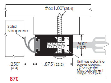 Zero 870AA 36" Adjustable Head and Jamb Gasketing - Clear Anodized Aluminum - Neoprene Insert
