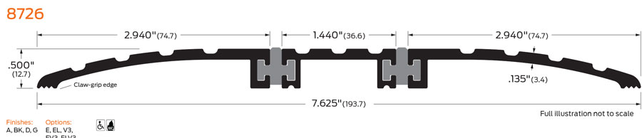 Zero 8726A 96" Thermal break threshold with 2 PVC Breaks, 7.625"W x .500"H, 96" Length, Mill Finish Aluminum