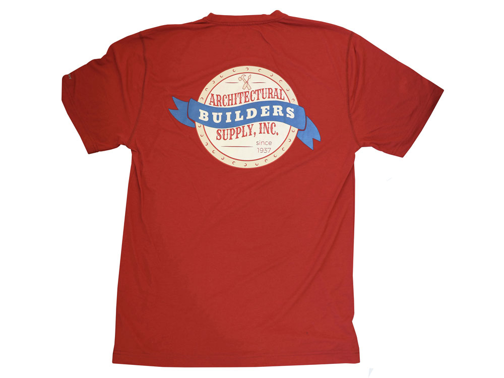 Red color T-Shirt with Architectural Builders Supply logo on front and back