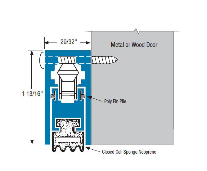 Automatic Door Bottom, Length: 26", Material: Extruded Aluminum Housing, with Sponge Neoprene insert, Soundproof, Lightproof