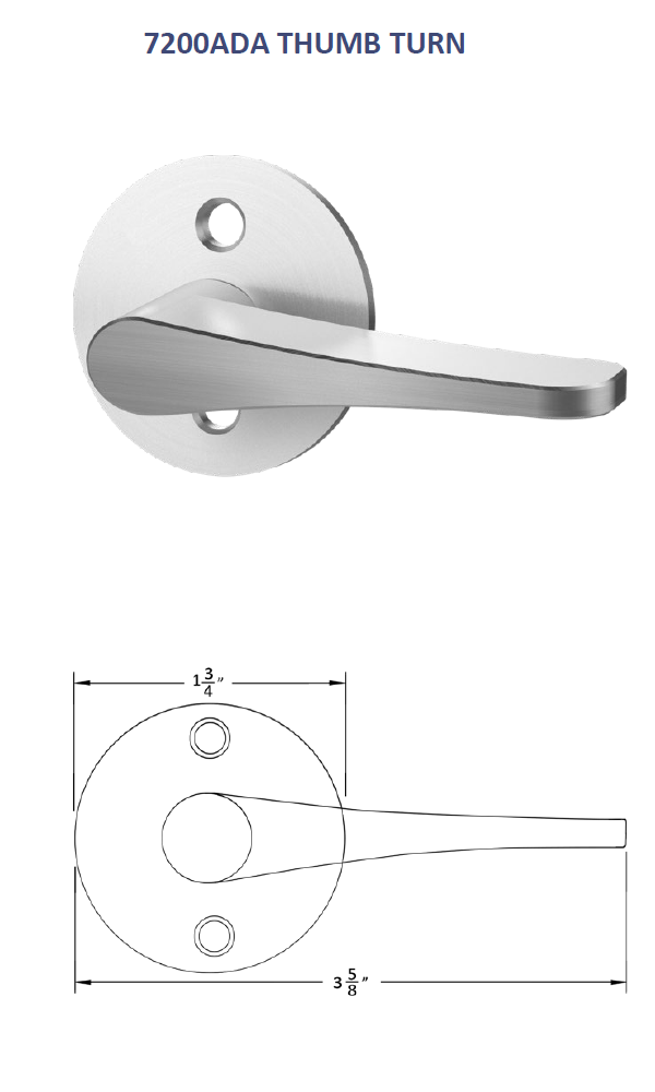 AccurateLH 9024.334.18L/1R/7200ADA.US32.RHR.138 Dormitory Door Lock, 3-3/4" Backset, for 1-3/8" Thick Doors, RHR, 18L Lever, 1R Rose, 7200ADA Thumb Turn, Bright Stainless Steel Finish