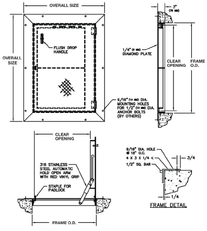 Designed for interior and exterior applications where watertightness is not required, to withstand 300 lbs. /sq. ft. loading