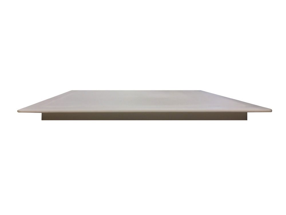 1/8" high impact styrene plastic with U.V. stabilizers.Flush to frame — rounded safety corners, one piece outside flange with 3/4" deep mounting frame