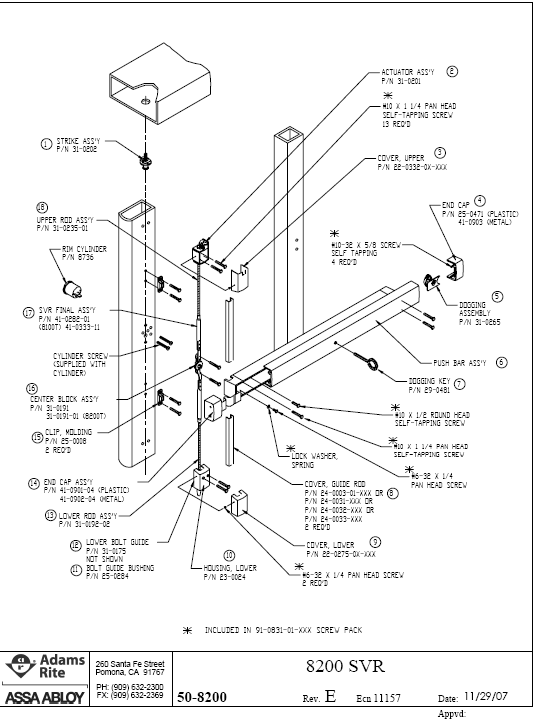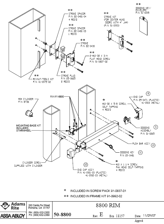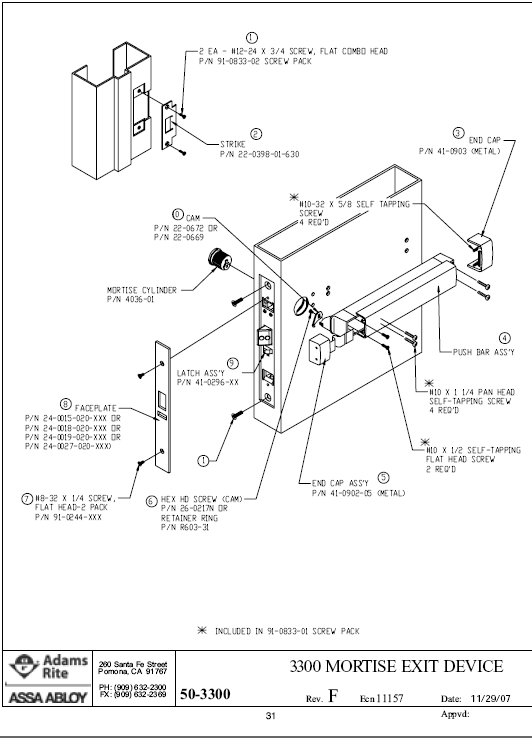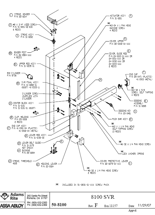 for 3100, 3300, and 8100, 8200, 8400, 8800 exit devices