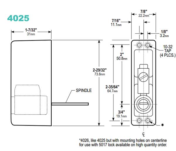 A pair of 4025 Cylinder Pulls can be mounted opposite each other with long machine screws. Security is maintained since each side offers access to only one screwhead. Both screws would have to be removed to operate the lock without its key. The -01 designation means the interior and exterior cylinders are keyed different.