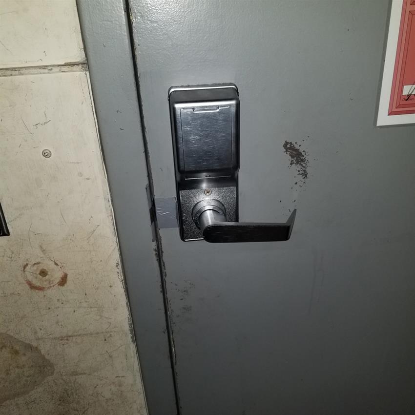 A: This is why you see deadbolts installed in addition to these electronic combination locks that have an occupancy indicator on the outside so you have a thumb turn on the inside with an occupancy indicator on the outside and then your electronic combination lock