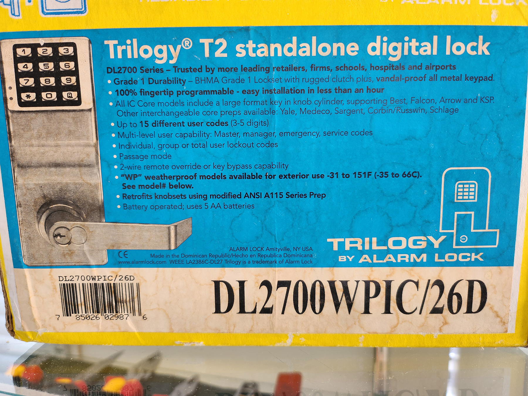 Alarm Lock DL2700WPIC US26D Trilogy Digital Lock For Weatherproof Interchangeable Core - Satin Chrome