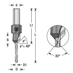 Amana AA55202 Countersink and Counter Bore Drill Bit - Carbide Tipped