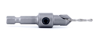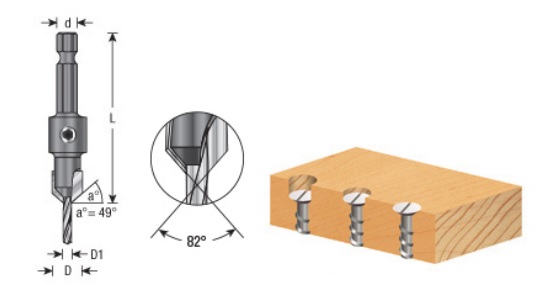 Drill pilot hole and tapered countersink for wood screws. The 2-flute integral design ensures uniform concentric results each and every time. Carbide tipped for long lasting results in hardwood, plywood, plastics, etc.