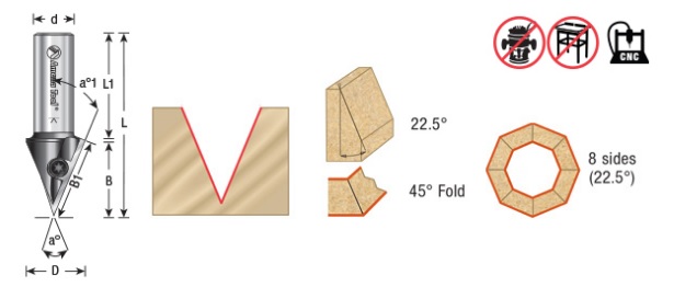 These industrial V-Groove insert router bits were especially designed for applications including: