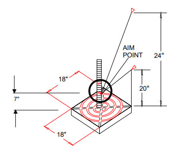 The Amerex half (½) flow point nozzle (P/N 11984) will protect a single burner with a surface area of 18” x 18” (46 x 46 cm). The nozzles must be located on the perimeter of the burner and 20 to 24" (51 – 61 cm) above the burners surface. The nozzle is aimed at a point 7” above the center of the burner.