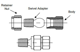 The swivel adapter (P/N 16440) is an option offered to aid the installation and aiming of the system nozzles. The adapter is composed of three parts – the body, swivel adapter, and retainer nut. All nozzles may be used with the swivel adapter without any change in the nozzle's listing.