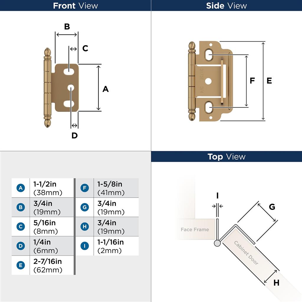 Amerock AMPK3180TB-CZ Champagne Bronze Ball Tip Full Inset Partial Wrap Free Swinging Hinge - 1 Each