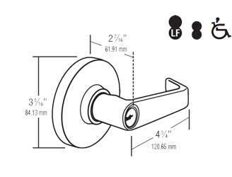 : Entrance/Office - Dead locking latch bolt operated by lever from either side except when outside lever is locked by pushing turn button inside. Key outside or operating inside lever releases turn button unlocking outside lever except when turn button had been rotated to keep outside lever locked. Inside turn button must be manually operated to unlock outside lever. Inside lever always operates latch bolt.