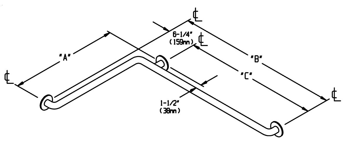 For compliance with ABA-ADA Accessibility Guidelines, install unit so that top of horizontal bar is between 33" and 36" (838 to 914) above finished floor (AFF) for use by adults.