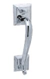 From exterior: Thumb piece operates handleset latch; key operates deadbolt.