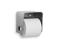 Satin finish hood toilet tissue dispenser, hood adds weight for easy tear and also protects paper roll from water droplets