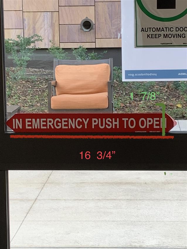Other Side Lettering = "In Emergency Push To Open"