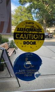 Besam "caution automatic door" round yellow decal for automatic doors