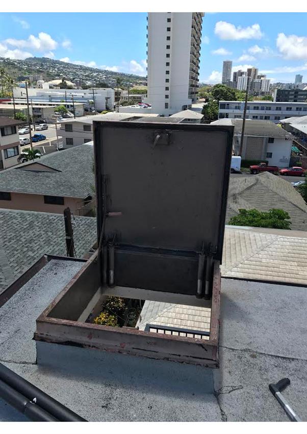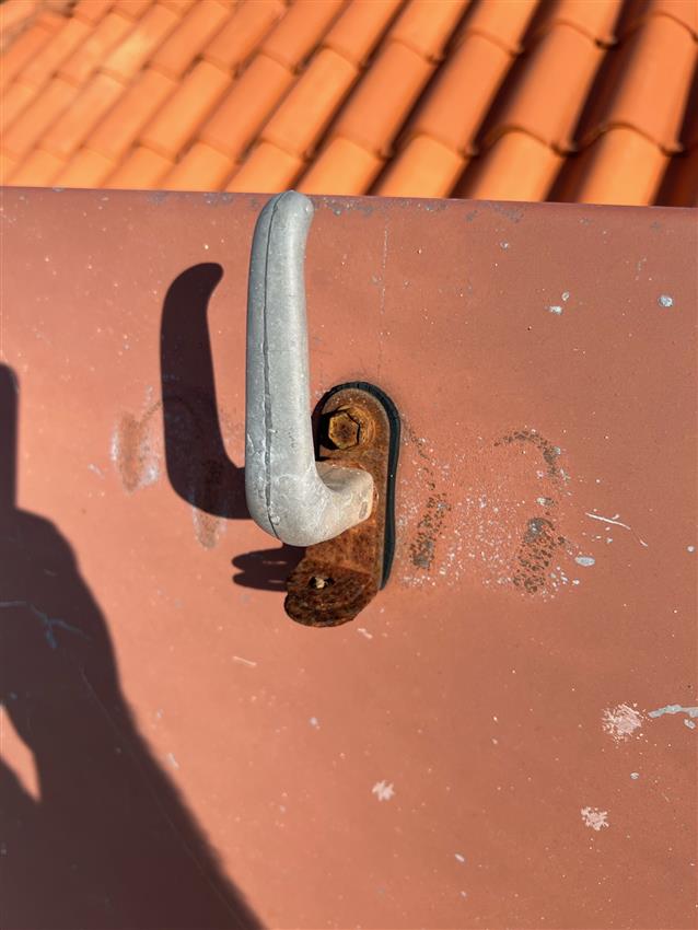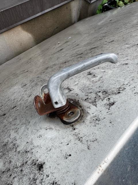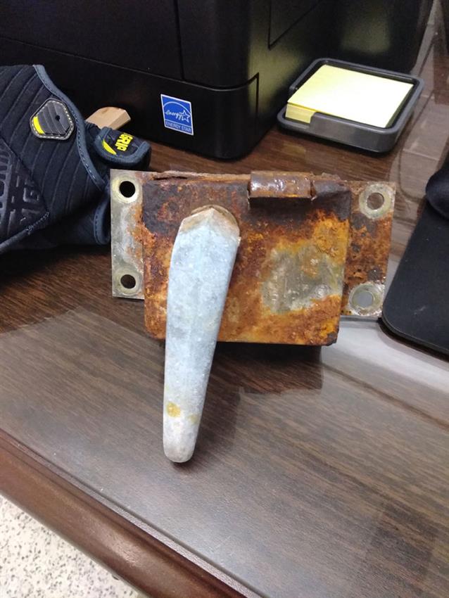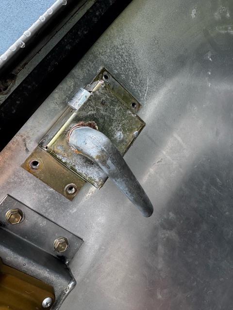 Non-stainless steel Replacement door latch for roof hatches. Shaft Length: 5-5/8"