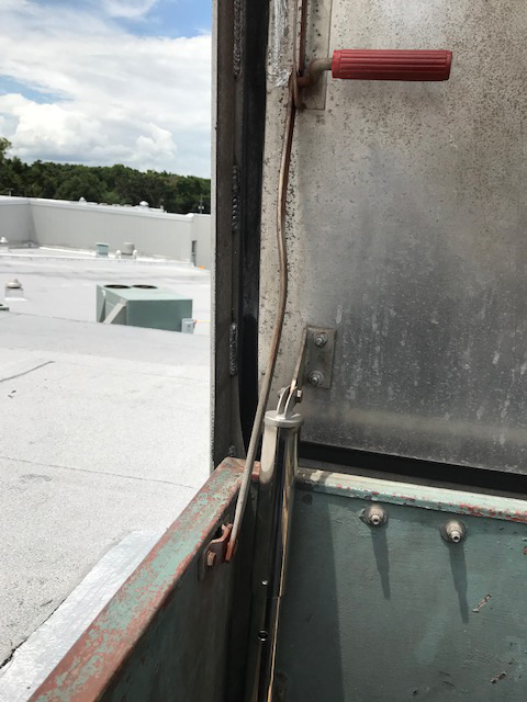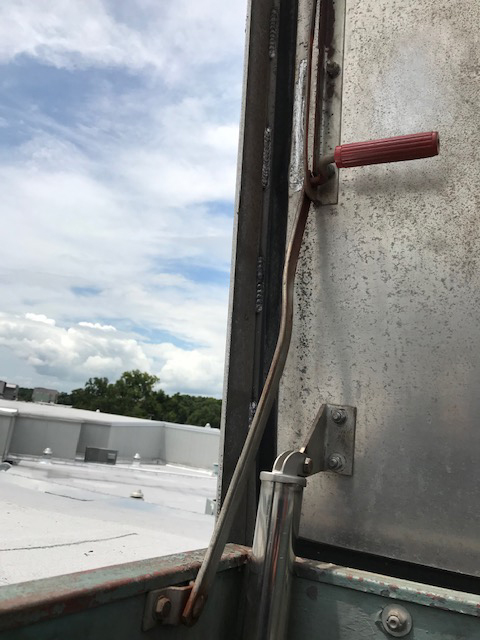 Non-stainless steel Replacement door latch for roof hatches. Shaft Length: 5-5/8"