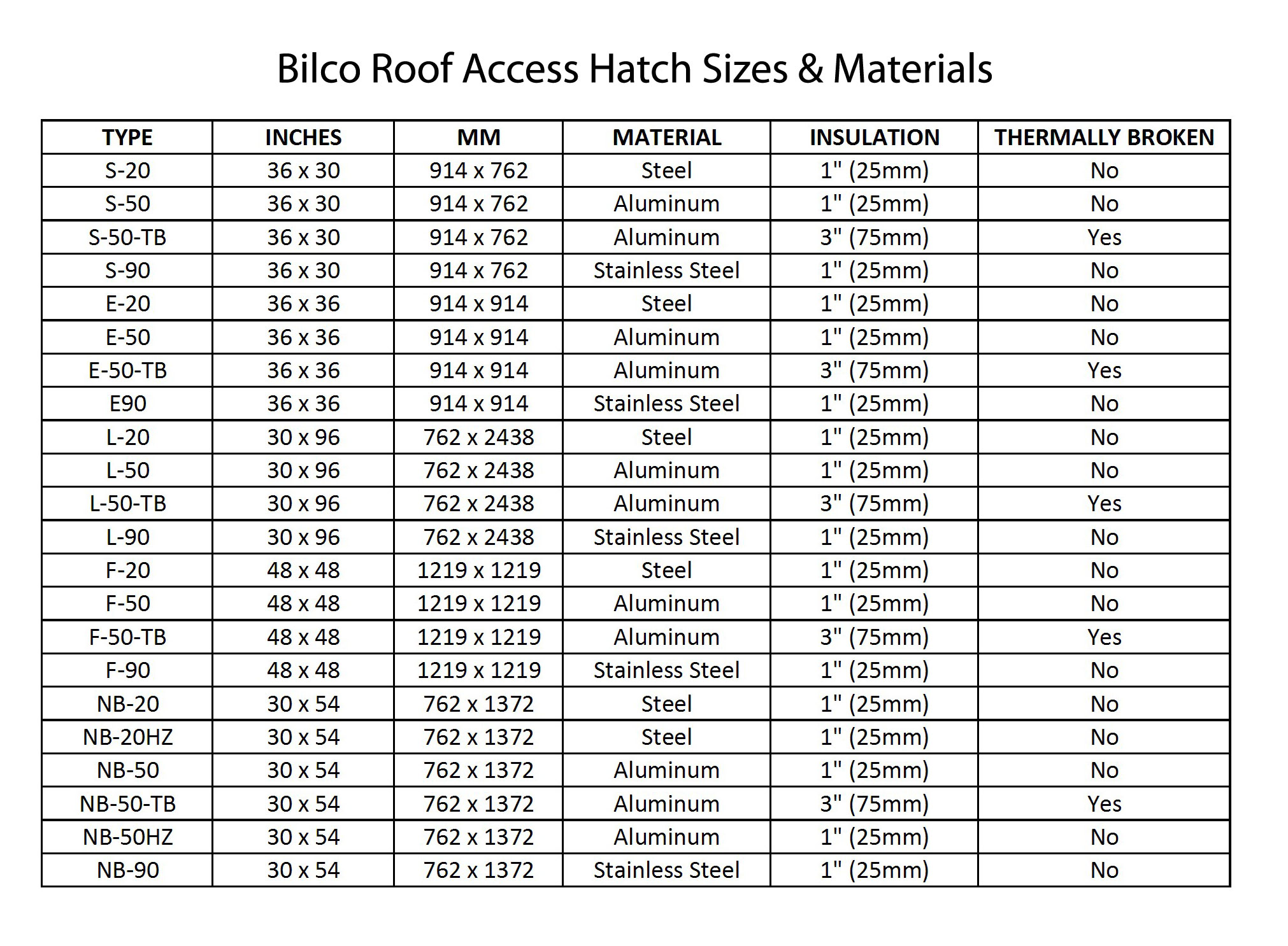 is available as a thermally broken unit and is the Bilco S-50TB Type S Thermally Broken Roof Hatch - 36" x 30" - Aluminum Cover and Curb