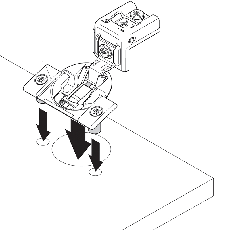 Dowel hinges must be inserted with knock-in tool or COMPACT insertion ram