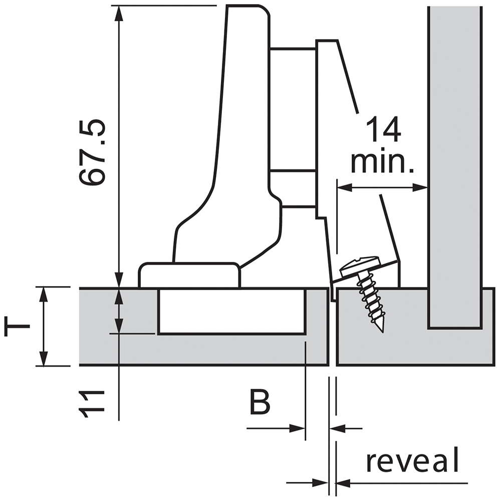 Blum BP333600 Two Piece Hinge & Baseplates, 1/4" to 1-5/8" Overlay, Screw-On