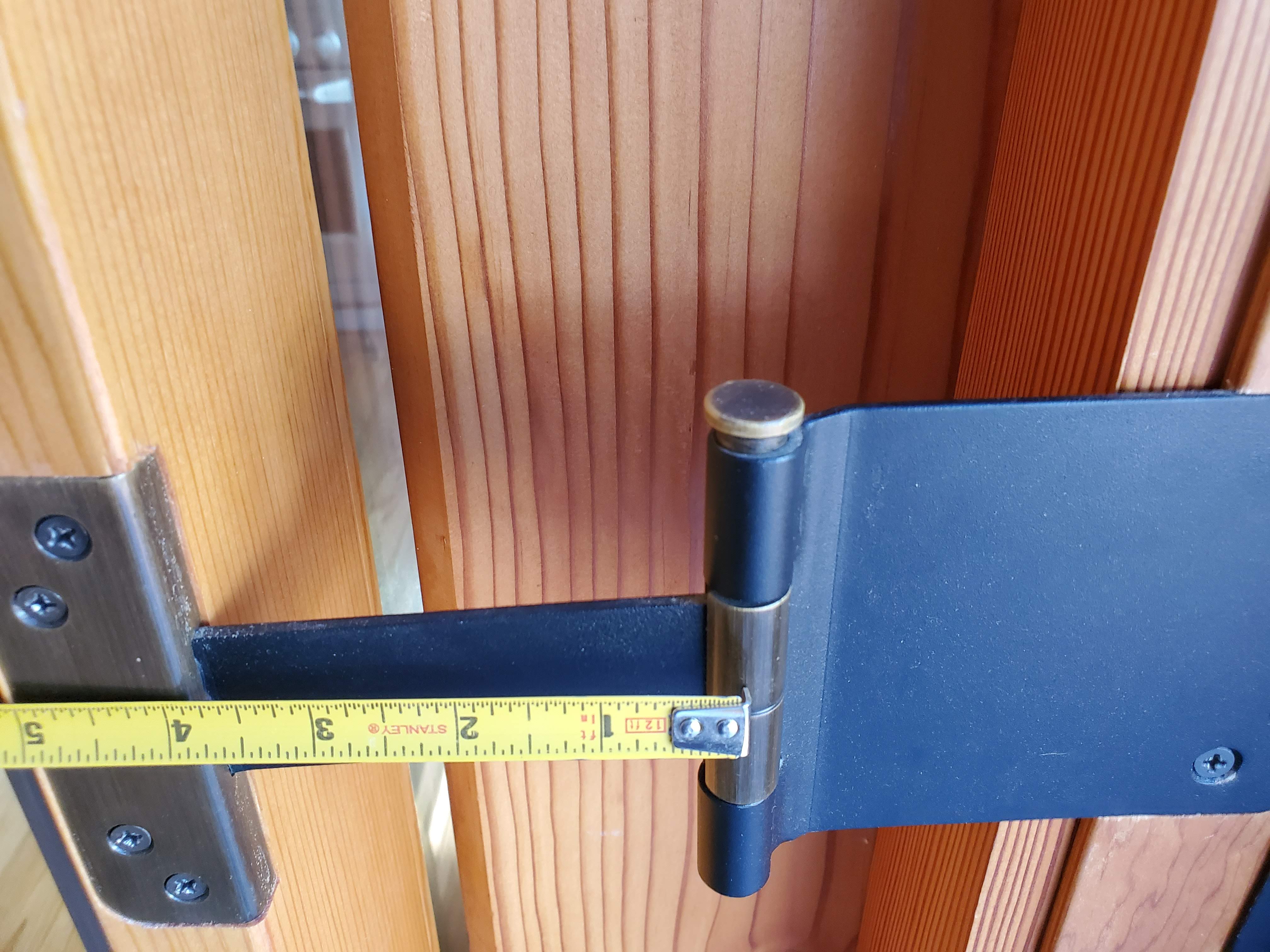 Q: I had my foreman take 2 pairs of wide throw 4-1/2” hinges to a welder. We cut the ends off of both to extend the dimensions, and welded the pieces together to make the hinge. Total cost of welding was $100/hinge (3 hinges for the door). Works great. Thanks for looking into my problem in the first palce.