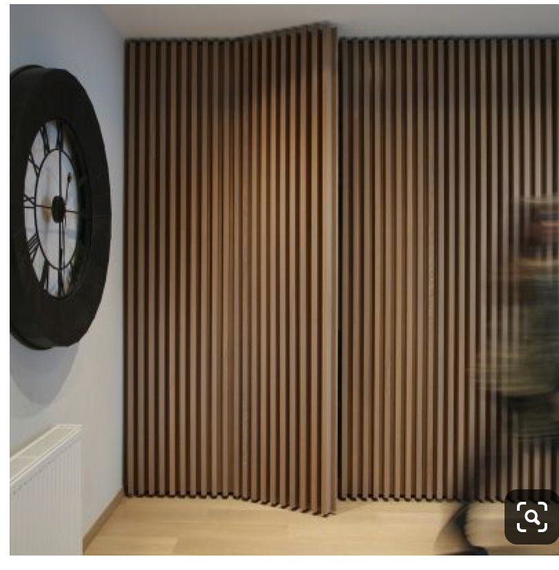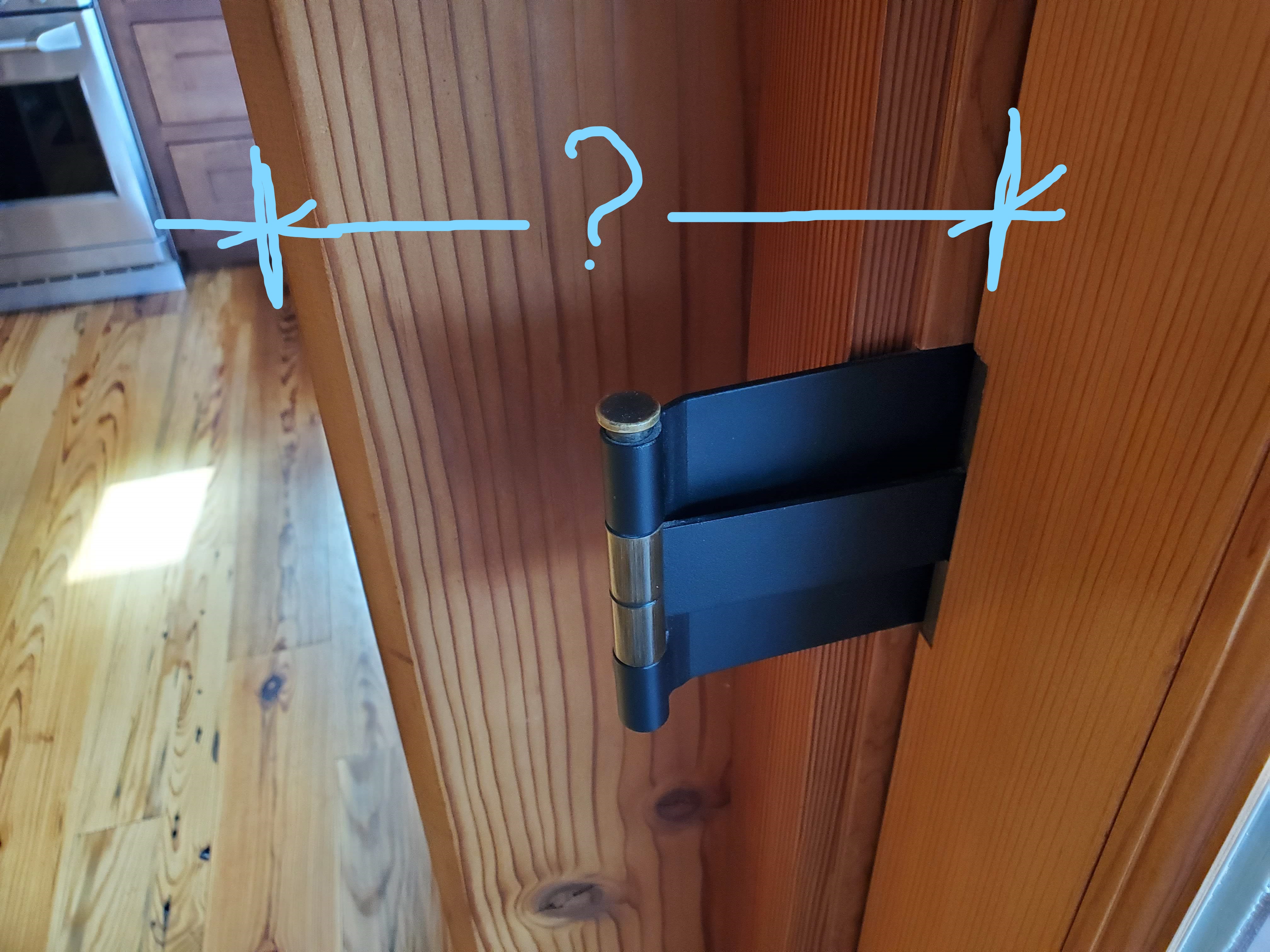Q: im builindg a slat wall design with a closet door, door needs to swing out but cant figure out how to clear 1 1/2" slats ive applied to wall and door, any thoughts on hinges i could use to accomplish this? ideally would like the door to be hidden and hardware not visible, door only needs to open to 90 degrees. door is 1 3/4 thick flush mount with 1 1/2" vertical slats nailed to face and wall with 1/2" spacers.