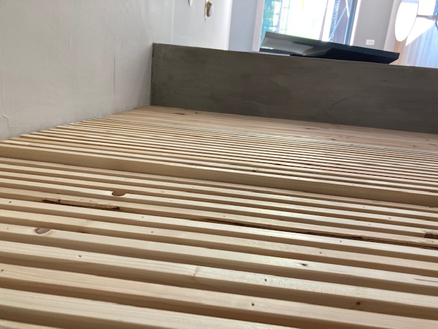 Q: I’ve built a slat wall with hidden door using your wide throw hinges to give the proper clearance. But as u can see it doesn’t close/stay closed so I’m trying to figure out a way to have it stay flush when there isn’t a door knob or latch. Make sense? Any suggestions? Photos here: