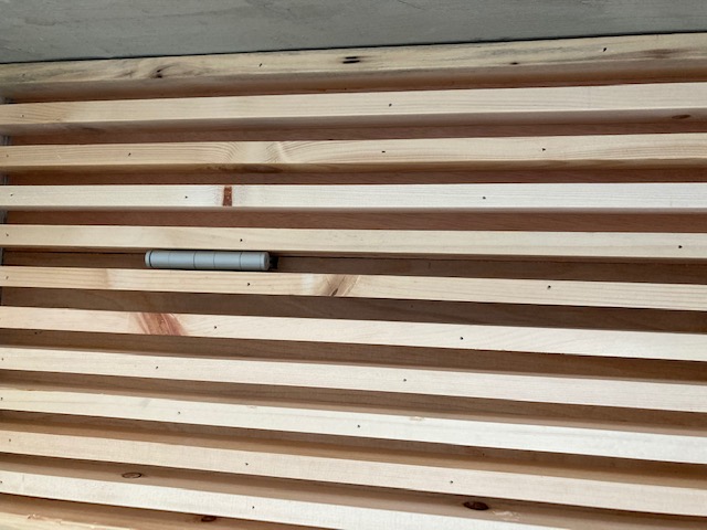 Q: Thank you so much for the answer how quickly you responded. So the door will be solid core and the slate are solid pine, would that make a difference, the slats are 3/4 wide by 1 1/2 deep and will be adhered with glue and finishing nails. Here is a picture of what we are going for: