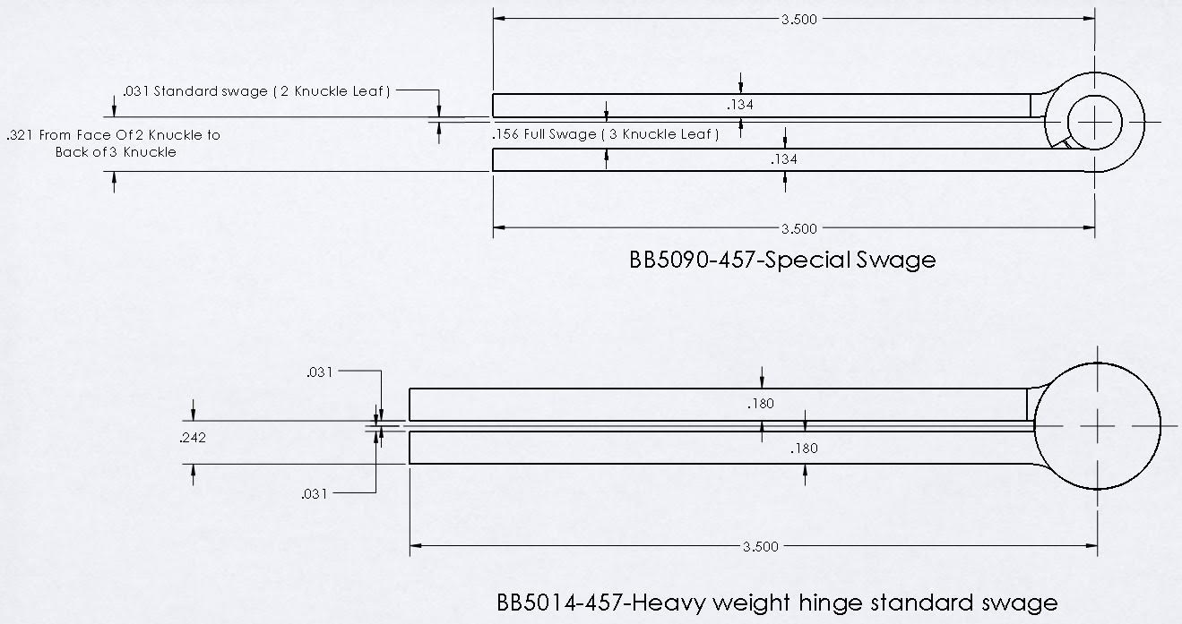 A heavy duty BB5014-457 has a standard .with a full swage on one leaf and a standard swage on the other leaf will only provide a .316 offset.
