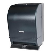 The push lever dispensing mechanism delivers 5-1/2" of toweling with each stroke and features a patented transfer system with 4" of stub roll capacity.