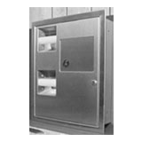 fabricated of type 304 (18-8) 18 gauge stainless steel with full length piano hinge and tumbler lock keyed like other Bradley units.