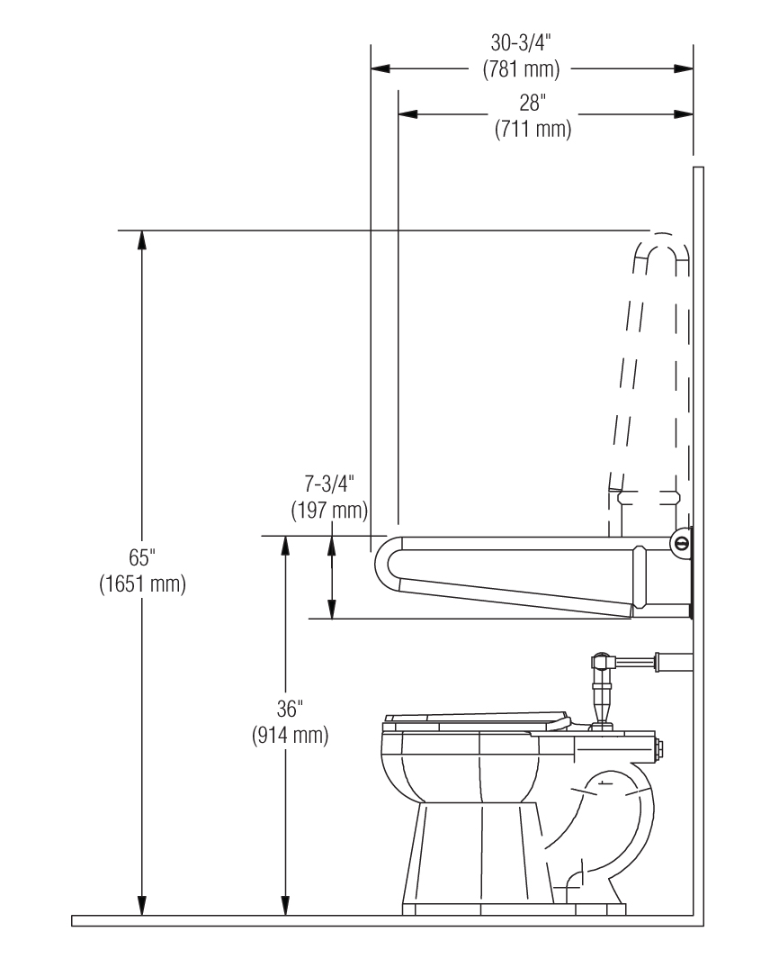 When properly mounted, all Bradley heavy-duty grab bar systems meet or exceed the requirements of ANSI Standard A117.1, the ADA and ABA Accessibility Guidelines for Buildings and Facilities (ADAAG), and the Uniform Federal Accessibility Standard (UFAS). Meets CT code 1109.2.4. Grab bar has been tested to support a vertical force of up to 550 pounds. Wall must be reinforced in the area of the grab bar in order to support the load it is intended to support.