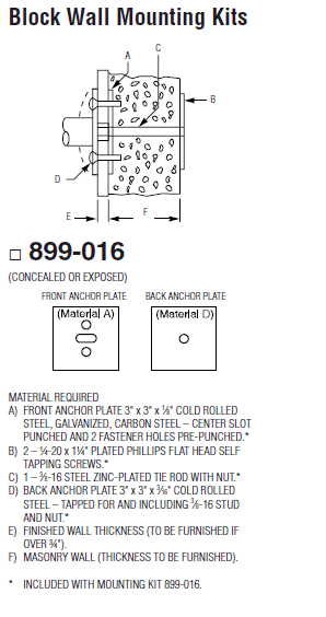 Engineering The 899-016000, mounting kit is set to accommodate a wall 2-3/4" thick only. No other variations of this mounting kit have been made to date, customer should provide their own threaded rod.