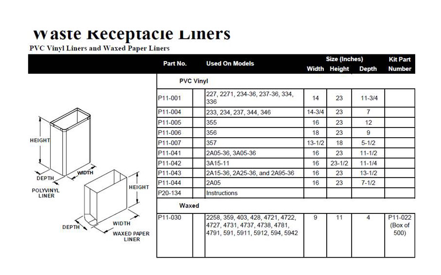 Bradley P11-031 Molded Plastic Waste Receptacle 8" W x 8" H x 3-5/8" W