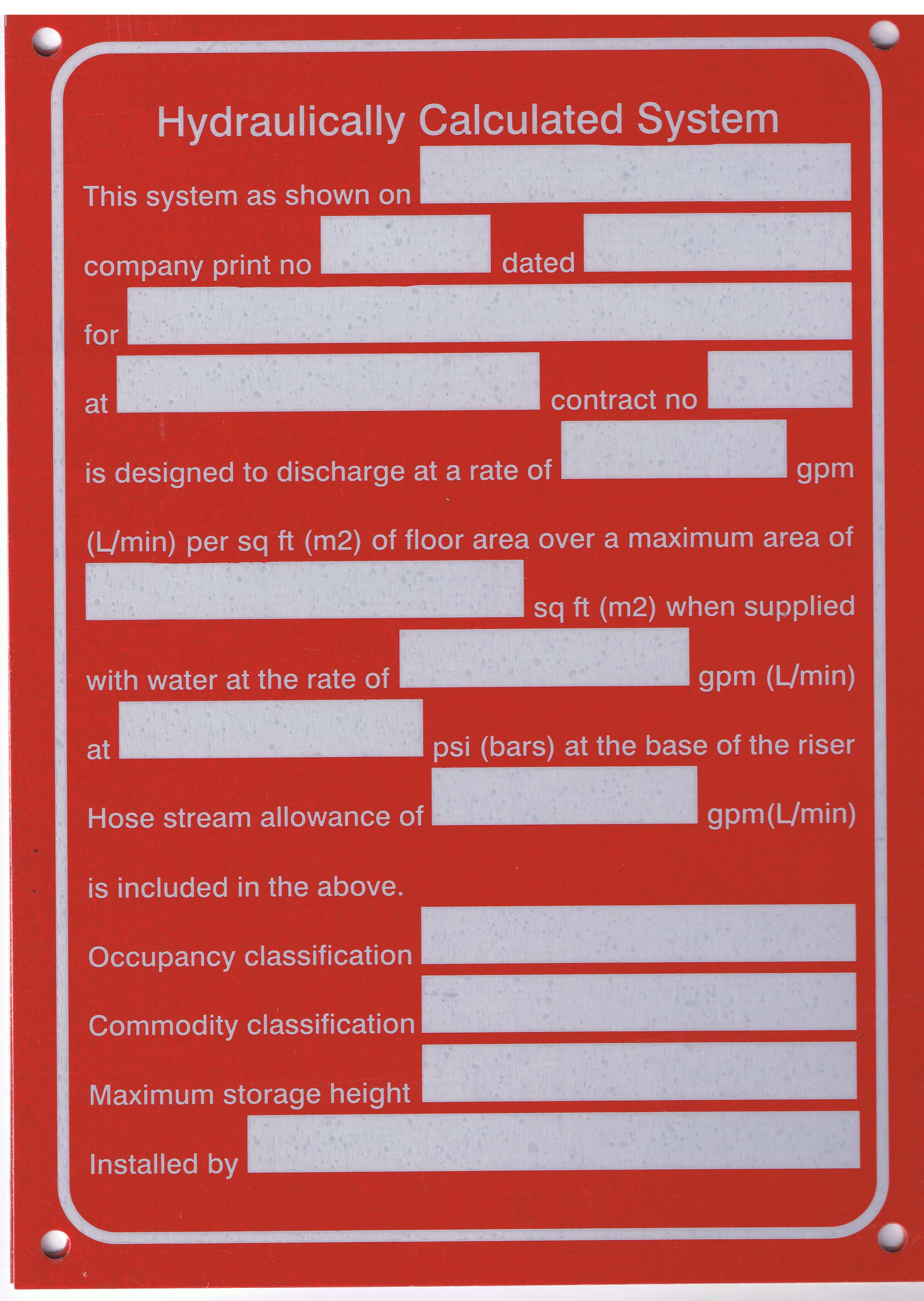 Brooks A232 Sprinkler Identification Sign ”HYDRAULIC SYSTEM...” - 5" x 7"