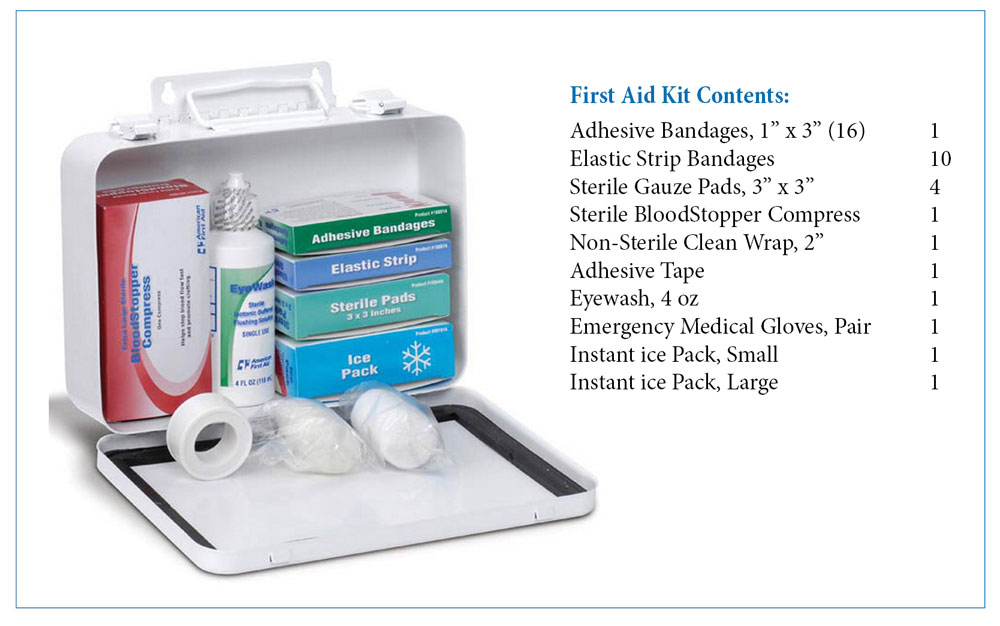 • Contains essential first aid products for the care of occupational injury and illness
