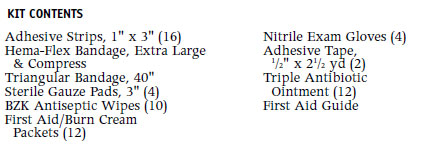 The 10-Unit FIRST AID KIT comes in a weatherproof plastic case with an easy carry handle for simple transport.