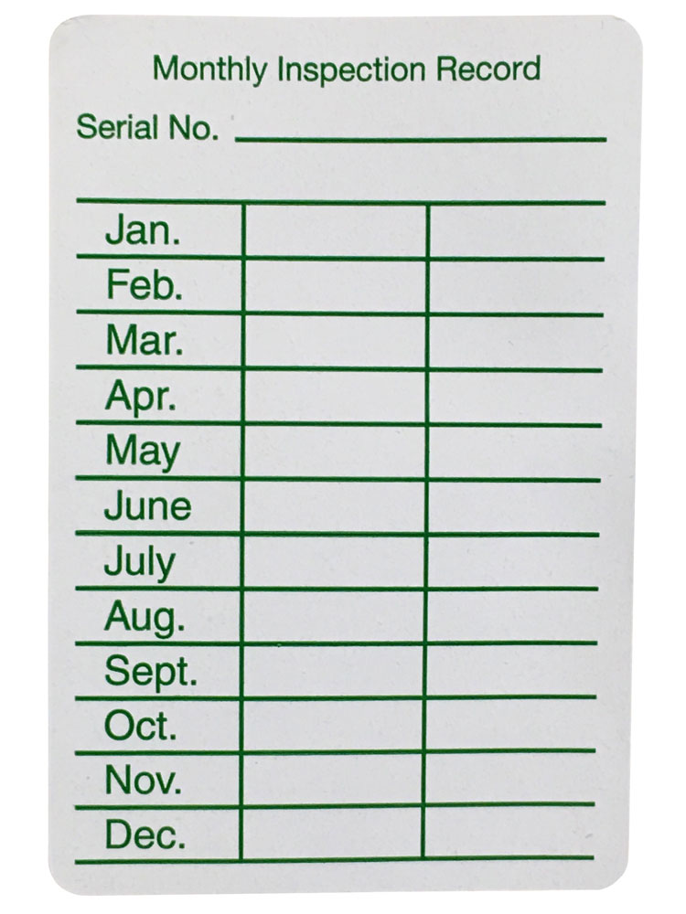 • Peel-and-stick monthly inspection tag