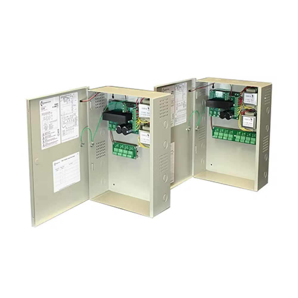 The PS440B/480B power supplies input 110-120VAC and deliver (4) amps @ 24VDC to (4) or (8) PTC fused outputs. It also provides (4) or (8) solid-state input triggers, protects system relays from shorts, grounds and surges. Its linear design makes it a perfect match for solenoid and motor driven exit devices, electric locks, electric strikes, and mag locks.
