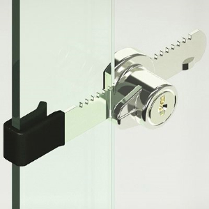 CompX Timberline disc tumbler ratchet lock is the perfect lock for sliding glass by-pass doors. Designed for 1/4" or thinner glass, this lock does not require any boring in the glass, which means a simple tool-free installation. The ratchet bar attaches to the back door and is held in place with set screw which keeps the lock from drooping down when in the locked position. Can be keyed together with Timberline disc tumbler locks (both cabinet and sliding glass door) using the same key blank. The lock plugs are non-removable. Stocked in 5 unique key numbers and includes 2 keys.