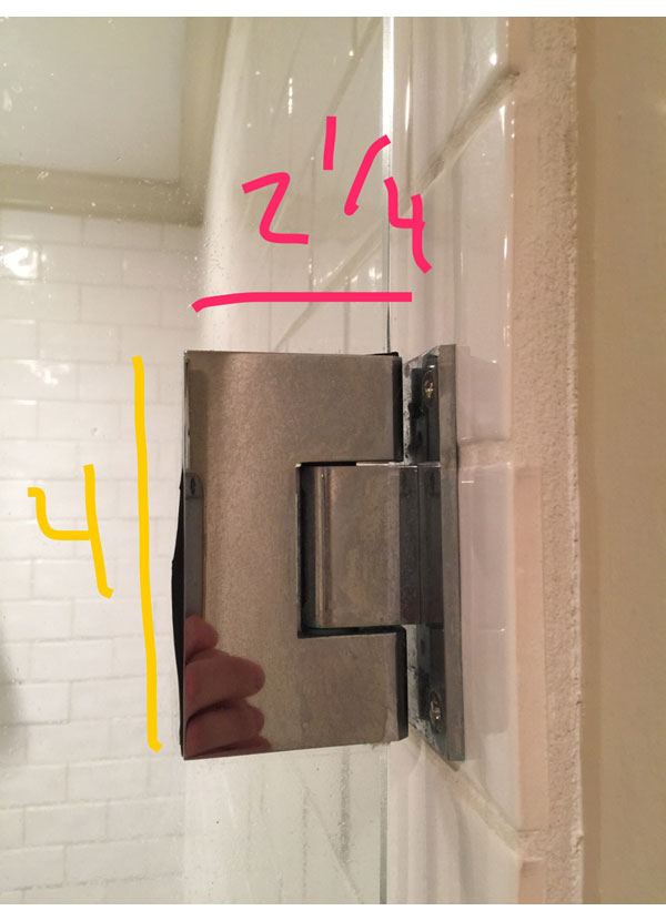 Using two hinges with 3/8" to 1/2" glass (10 to 12 mm) the hinge will hold up to 110 lbs. (50 kg) with a maximum door width of 36" (914 mm). Using three hinges with 3/8" to 1/2" glass (10 to 12 mm) the hinge will hold up to 140 lbs. (63 kg) with a maximum door width of 36" (914 mm)