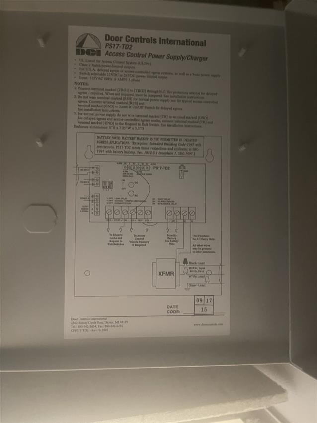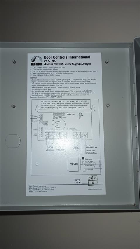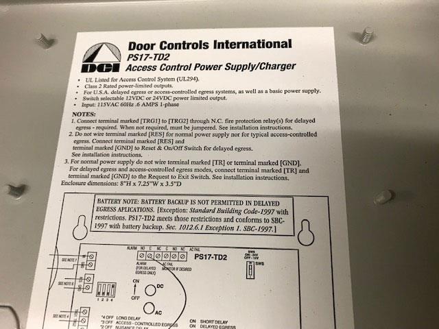 DCI PS17-TD2 Standard Access Control Power Supply/Charger - Time Delay System for all Special Locking Arrangements - Powder Coated Gray