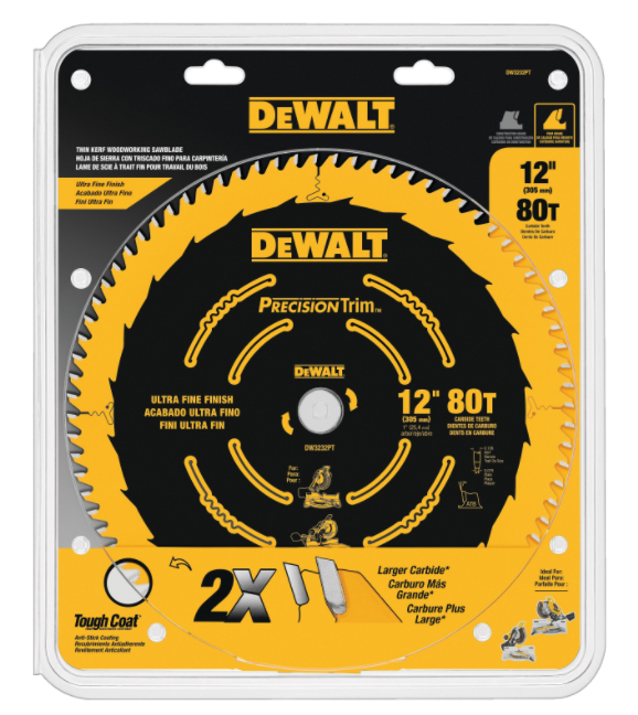 Dewalt DW72100PT, Precision Trim Coated Thin Kerf 12" 100T Trim Ultra Miter Blade